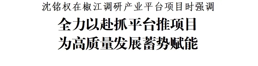 5月10日下午,市委副書記、市長沈銘權(quán)在椒江調(diào)研產(chǎn)業(yè)平臺(tái)項(xiàng)目推進(jìn)情況。他強(qiáng)調(diào),要深入學(xué)習(xí)貫徹習(xí)近平總書記考察浙江重要講話精神,認(rèn)真落實(shí)省委省政府和市委決策部署,聚焦培育和發(fā)展新質(zhì)生產(chǎn)力,深入推進(jìn)產(chǎn)業(yè)平臺(tái)提能升級,全力加快重大產(chǎn)業(yè)項(xiàng)目建設(shè),強(qiáng)化全要素保障、全環(huán)節(jié)跟進(jìn)、全過程服務(wù),切實(shí)推動(dòng)平臺(tái)項(xiàng)目建設(shè)提速提效,為臺(tái)州高質(zhì)量發(fā)展蓄勢賦能。副市長李昌明參加調(diào)研。
